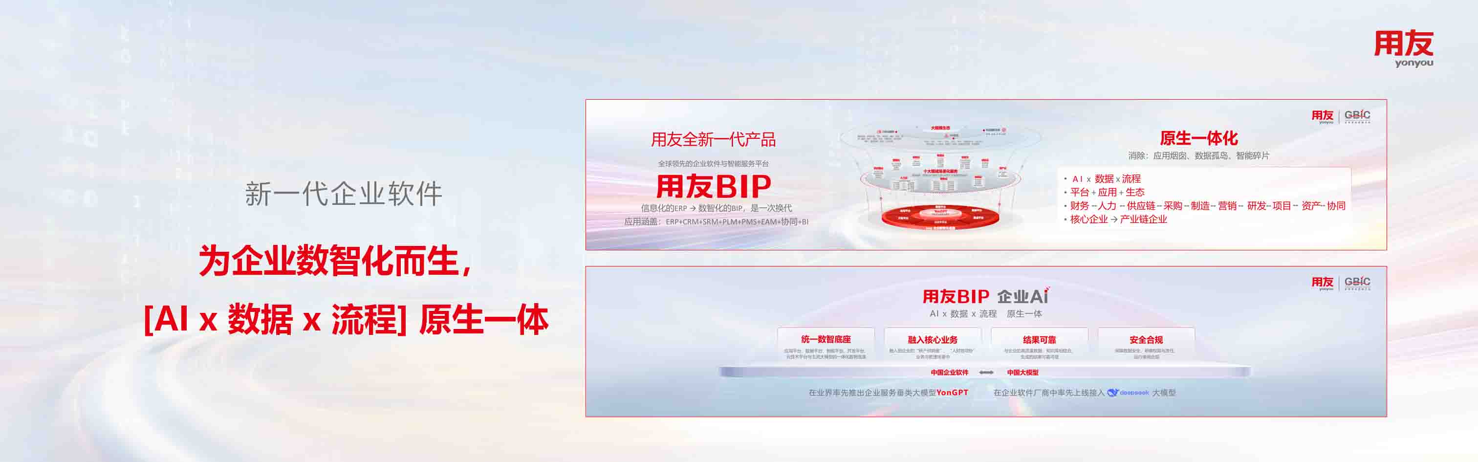 今年,用友最新发布的用友BIP 5以“AIx数据x流程”原生一体为核心优势,让企业软件从传统的“工具系统”进化为业务的“智能伙伴”。通过用友BIP的企业AI、企业数据云、流程服务、数智底座,助力企业重塑业务和管理流程、激活数据价值、一站式落地AI应用。