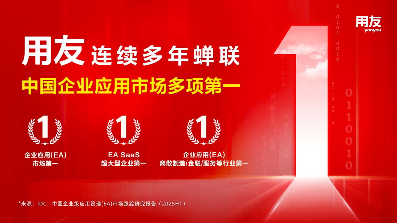 12月18日,IDC发布《中国企业级应用管理(EA)市场跟踪研究报告(2025H1)》,用友再蝉联2025H1中国企业应用(EA)市场占有率第一、企业应用SaaS超大型企业市场占有率第一、并在离散制造、金融、服务、教育、媒体、电信等行业企业应用市场占有率第一!