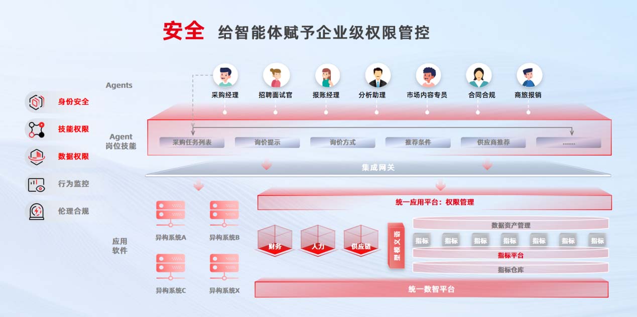 用友智友·企业AI新入口,通过权限可控、过程透明、结果可溯、效益可见的完整闭环,让企业能够放心、省心地管理成百上千的智能体,真正让AI成为一项可控、可信、可衡量的战略资产。