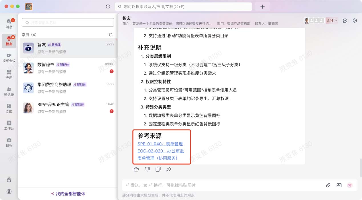 当大模型调用企业知识库生成答案时,智友会将答案的知识来源直接附在下方。如果用户对答案有任何疑问,可以一键点击原始文件进行实时查看和二次确认。这种“刨根问底”的机制,极大地提升了AI输出的可靠性和用户的信任感。