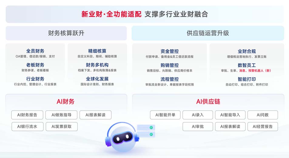 值此关键节点,畅捷通发布好业财AI新业财,通过“技术+应用”的五维升级,开启从“传统业财”到“AI新业财”的深刻变革,重新定义财务进销存,赋能企业迈向智慧经营新纪元。