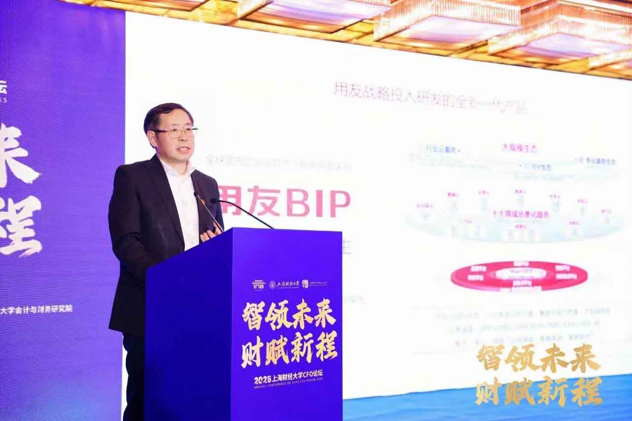 11月22日,以“智领未来 财赋新程”为主题的2025上海财经大学CFO论坛在上海举办,用友董事长兼CEO王文京受邀出席并发表主题为《智能会计,引领全球》的演讲。王文京指出,智能会计正成为数智时代的全球会计新范式,中国的智能会计等数智商业创新将引领全球!
