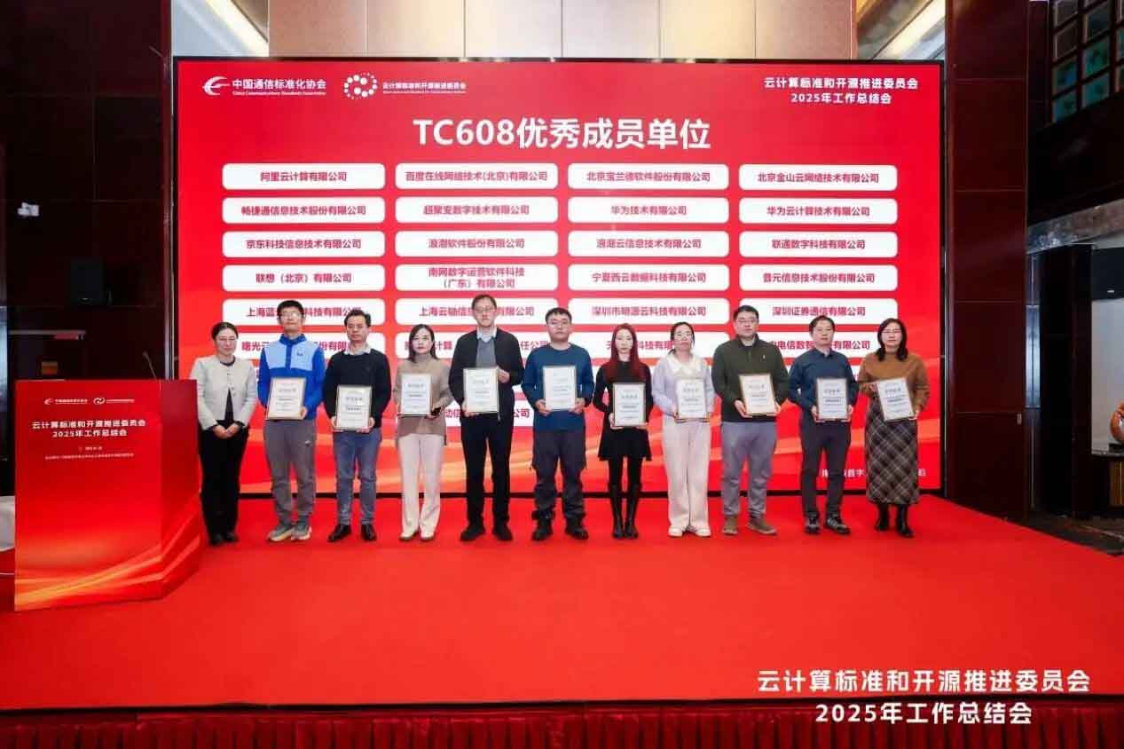近日,由中国通信标准化协会云计算标准和开源推进委员会主办的2025年度工作总结会在北京隆重召开。会议全面回顾了TC608在过去一年中在推动云计算标准体系建设、促进开源技术创新及产业协同发展等方面取得的重要成果,并对在2025年度表现突出的成员单位和专家予以表彰。