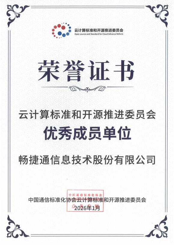 此次荣获“优秀成员单位”,是业界对畅捷通长期以来坚持技术驱动、深耕行业、开放贡献的充分肯定。作为云服务领域的践行者与推动者,畅捷通持续加强技术创新与标准建设,公司不仅将标准成果应用于自身产品与服务的持续优化中,提升了服务品质与客户体验,更通过开放输出,带动了整个行业技术水准与服务能力的提升。