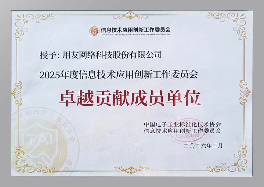 近日,中国电子工业标准化技术协会信息技术应用创新工作委员会(简称信创工委会)2025年度总结大会在北京成功举办。会上信息技术应用创新工作委员会授予用友公司“2025 年度信息技术应用创新工作委员会卓越贡献成员单位”。