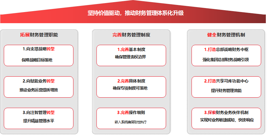 1、健全财务管理职能:通过“三转型”实现财务成为企业的“价值引擎”